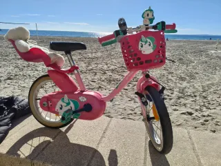 Bicicleta infantil con un diseño divertido y llamativo. - Con ruedas resistentes para todo tipo de asfalto. - Con 2 ruedines laterales. - Cadena protegida y recientemente engrasada. - Para niñ@s entre 2 y 5 años.