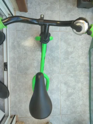 Bicicleta de equilibrio de color verde para niños. Ideal para iniciarse en el mundo de las dos ruedas. - Marco de metal resistente. - Ruedas de goma. - Asiento ajustable - con llave de ajuste y timbre
