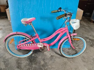 Bicicleta infantil de color rosa, ideal para los más pequeños. - Ruedines incluidos para mayor estabilidad. - Diseño divertido y llamativo. - Frenos y manillar adaptados para niños.