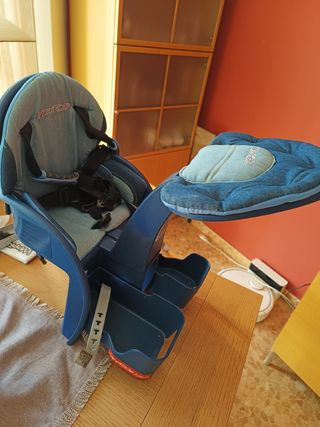 Asiento trasero para bicicleta con respaldo y manillar para niños. Incluye un par de pedales - Sillín acolchado con funda de cuero sintético. - Respaldo suave para mayor comodidad. - Manillar para que el niño se sujete. - Pedales metálicos plegables. Como nuevo, se ha gastado 3 veces.