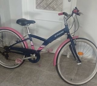Vendo bicicleta Rockrider (Decathlon) en color turquesa, ideal para niña o niño. Muy cuidada y en buen estado, lista para usar. Características: • Marca: Rockrider • Modelo: Victoria • Ruedas: 24 pulgadas (aprox.) • Cambios traseros • Suspensión delantera • Frenos en buen estado • Cubrecadena de seguridad • Reflectantes en ruedas • Ideal para paseos, caminos y uso diario Se vende por cambio de talla. Se puede ver y probar sin compromiso.