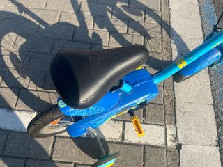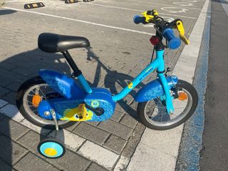 Bicicleta para niños de 14 pulgadas de la marca Decathlon. Está en muy buen estado, apenas se ha usado. - Ideal para niños pequeños. - Color azul. - Asiento de cuero sintético negro.