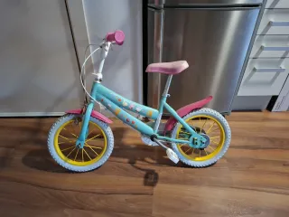 Bicicleta infantil de Peppa Pig, ideal para las pequeñas ciclistas. - Color azul y rosa. - Ruedines amarillos. - Diseño divertido con Peppa Pig.