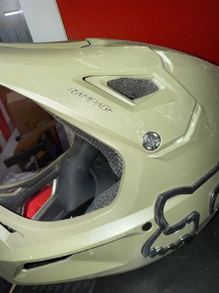 Casco de bicicleta con diseño de zorro. talla 48 YS - Color verde militar. - Logo de Fox en negro.