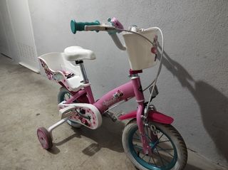 Bicicleta para niña, en buen estado. Ideal para aprender a montar en bici. - Tiene ruedines. - Cesta delantera. -Cesta trasera portabebés - Asiento acolchado. - Diseño infantil.