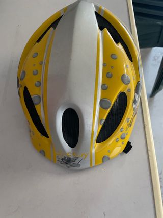 Casco de bicicleta para niños en color amarillo brillante. Diseñado para proteger durante los paseos. 47-53 cm - Diseño con ventilación. - Correa ajustable. - Adhesivos decorativos.