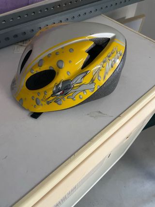 Casco y guantes para niña, ideales para bicicleta o patines. El casco está en muy buen estado y los guantes son nuevos. - Casco con diseño de Minnie Mouse. - Guantes con diseño de Tweety. - Talla del casco: consultar medidas. - Talla de los guantes: consultar medidas.