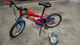 Bici infantil, para niños de 5 a 8 años mas o menos, no recuerdo si son 20" o algo menos, esta en buen estado, lo ha usado poco, tiene un poco de polvo de estar en el trastero.