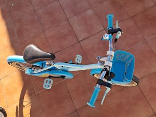 Bicicleta Frozen para niñas, en buen estado. Ideal para que las más pequeñas de la casa empiecen a disfrutar del ciclismo. - Modelo Frozen con detalles de la película. - Tiene cesta delantera. - Incluye sillín cómodo. - Ruedas de 16 pulgadas.