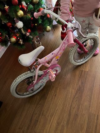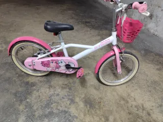 Bicicleta infantil BTWIN de 16 pulgadas en color rosa. - Ruedas de 16 pulgadas. - Guardabarros delantero y trasero. - Cambio 5 velocidades en puño. En muy buen estado.