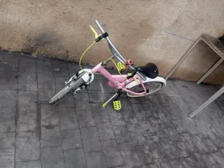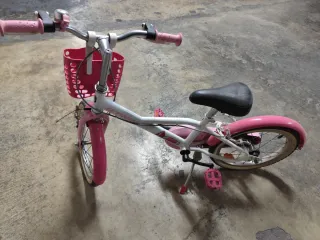 Bicicleta infantil Btwin con ruedas de 16 pulgadas. Solo le faltaría los puños que se ponen nuevos por 10€ más , va perfecto todo. - Color rosa. - para de cabra.