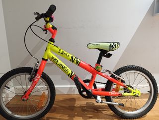 Bicicleta para niños en buen estado. Ideal para que los más pequeños empiecen a disfrutar del ciclismo. - Bicicleta de 16 pulgadas. - Color rojo y azul. - Incluye frenos y ruedas en buen estado.