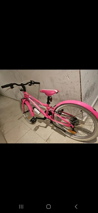 Bicicleta infantil en buen estado, ideal para niñas. - Guardabarros delantero y trasero. - Frenos de mano. - Ruedas de goma. - Pedales negros.