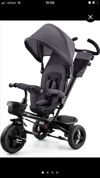 Triciclo evolutivo de la marca Kinderkraft, diseñado para acompañar el crecimiento del niño. - Color gris oscuro. - Capota extensible. - Barra de seguridad. - Reposapiés. - Cesta de almacenamiento. ENTREGA EN SANTA CRUZ TF