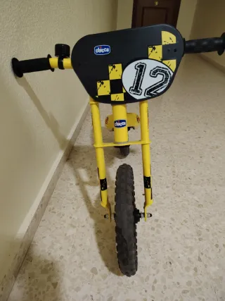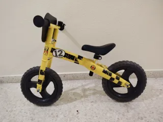 Bicicleta de aprendizaje de color amarillo, ideal para que los más pequeños aprendan a mantener el equilibrio. - Ruedas de 12 pulgadas. - Sillín ajustable en altura. - Manillar con puños de goma. Escucho propuestas serias