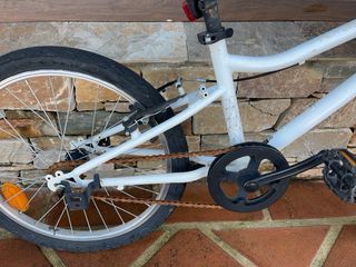Bicicleta de niño de la marca Rockrider, en color blanco. Se encuentra en perfecto estado y ha tenido muy poco uso. - Cuadro de aluminio. - Ruedas de 20 pulgadas. - Frenos V-brake. Regalo casco infantil