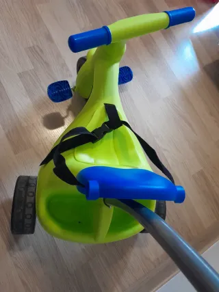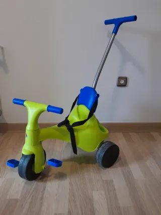 Triciclo para niños en buen estado, ideal para paseos. - Color verde brillante con detalles en azul. - Asiento cómodo y seguro. - Barrera anticaídas - Pedales antideslizantes. - Mango con agarre para poder empujar sin esfuerzo