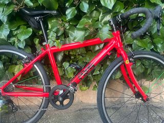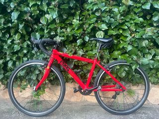 Bicicleta de carretera de color rojo, pensada para niños. - Cuadro de aluminio. - Ruedas de 20 pulgadas. - 8 piñones, 1 plato. Preparada para competir en escuelas.