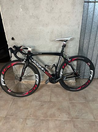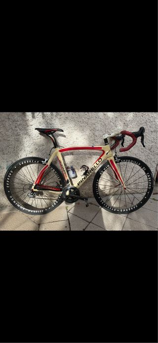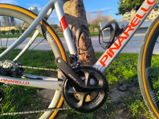 Bicicleta de carretera Pinarello de carbono con componentes Shimano Ultegra. - Cuadro y horquilla de carbono. - Frenos de disco. - Ruedas carbono Mavic Ksyrium. - Manillar carbono . -Tija most -Cambios eléctricos shimano ultegra. -Cadena nueva, cassette nuevo 11v(11/32) pastillas delanteras nuevas, cinta Manillar nueva, Sillin nuevo most, pedales look keo Classic incluidos...acaba de pasar la revisión y esta lista para utilizar -Talla 54.... Yo mido 1,74