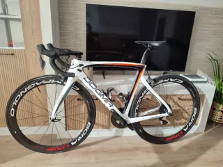 Bicicleta de carretera Pinarello de carbono. - Cuadro y horquilla de carbono. - Ruedas Bora. - Transmisión Shimano. - Sillín Prologo. - Portabidón Elite. -Ciclocomputador gps wahoo de 350€