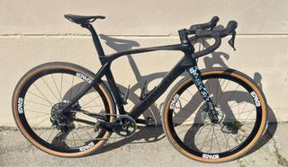 Bicicleta de carretera Pinarello Razha de carbono en color negro mate. - Cuadro y horquilla de carbono. - Frenos de disco. - Ruedas Fulcrum Racing - Cubiertas Pirelli P4 sport recién puestas - Grupo completo Sram Force AXS - Tija de carbono - Potencia y manillar Deda La bicicleta tiene 2 años justo ahora por lo que le queda un año aún de garantía de tienda Está recién hecha la revisión, engrasado eje de pedalier, dirección, los rodamientos van muy finos Talla 57'5 yo mido 1'88