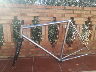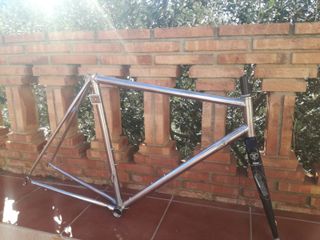 Cuadro profesional de acero Columbus EL-OS (oversize) ligero y performante . Decapado y listo para ser pintado. Mide 55 cm de tubo orizontal. Geometria clasica . Horquilla sintema Tenax 1 pulgada full carbon Tija 27,2 Se envia a toda España Colnago,de rosa,bianchi,fixie,campagnolo record,shimano dura ace ,time,look,zipp,cervelo,zeus,gios,orbea,mavic,giant,pinarello,mendiz,pista,titanio,lemond,tht, - Material: Acero. - Tubos Columbus EL. - Horquilla Sintema Tenax.