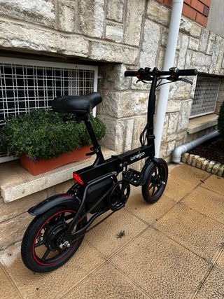 Bicicleta eléctrica plegable Isinwheel U1 nueva, sólo tiene 24 kms, la vendo por no usar. Motor: Cuenta con un motor de 250 W nominales (potencia máxima de hasta 500 W), ubicado en la rueda trasera, que asiste el pedaleo o funciona con un acelerador Batería: Incorpora una batería de litio de 36 V y 7,8 Ah, oculta en el cuadro para protección contra los elementos. Se carga completamente en aproximadamente 3-4 horas. Autonomía y Velocidad: Ofrece una autonomía máxima de hasta 45 km y una velocidad máxima asistida de 25 km/h. Diseño: Es plegable y cuenta con neumáticos de 14 pulgadas. Incluye frenos de disco dobles