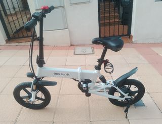 Bicicleta eléctrica plegable de la marca Ess Watt con motor de 350W. Ideal para desplazamientos urbanos. Recién sacada y revisada en taller especializado. - Autonomía actual 15km reales (se puede ampliar mucho más) - Diseño plegable para fácil almacenamiento y transporte. - Ruedas de 14 pulgadas. - Frenos de disco. - Color blanco.