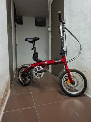 Bicicleta plegable de 14 pulgadas en buen estado. - Color rojo. - Ideal para desplazamientos urbanos. - Fácil de guardar y transportar.