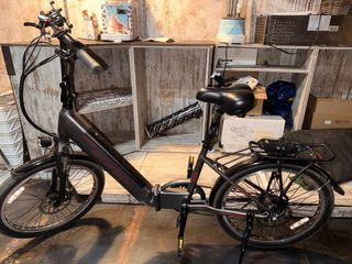Bicicleta eléctrica plegable con ruedas de 24 pulgadas. Batería integrada en el cuadro, aunque también se puede sacar y cargar por separado. Las bicis plegables normalmente tienen las ruedas de no mas de 20" y esta es de 24" lo que hace que las rampas cuesten aún menos. La compré en verano 2024 por 1700€ y la usé de septiembre a enero para ir de la estación de Mataró a la urbanización Can Quirze, o sea que tiene muy poco uso! Está como nueva y es preciosa. La vendo por 1150€ y regalo: - cesta ya colocada (unos 40€). - aceite para las cadenas. -candao (aunque éste ya venía con la bici)