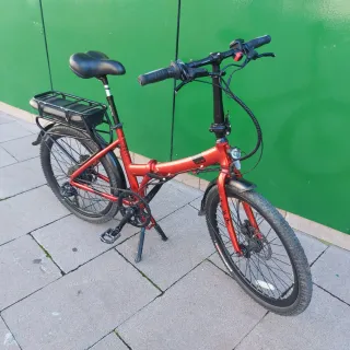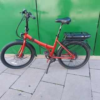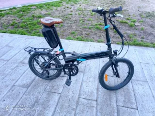 Bicicleta eléctrica plegable B'twin 500e, - mejoras en cuanto a rendimiento - 2 baterías de 24v y 15 amperes - Ruedas de 20 pulgadas. - Sillín cómodo y ajustable. - Portaequipajes trasero. - cubiertas 20x2.35 - luces funcionan bien - la bici está lista para uso - Perfecto para repartidor o gente que le gusta ir lejos con bicicleta. Yo voy de vilapicina a Gava justo por la parada del renfe y vuelvo a casa sin miedo de quedarme sin batería - entrego otro juego de cubiertas casi nuevas Entrego en la puerta de mi casa y no envío Para probarla pagar, si no te las quedas te devuelvo el dinero
