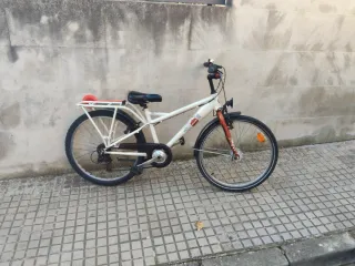 Vendo bicicleta infantil. Ruedas de 24 pulgadas. Muy bien conservada. Luz delantera que no necesita pilas, con dinamo en el eje de la rueda delantera. 6 marchas. Cambio Shimano. Frenos Vbrakes. Manillar estilo BMX. Cubrecadena. Timbre. Parafangos. Portabultos. Dispositivo plegable en el lateral para ser visto. Sillín muy cómodo. Neumáticos en buen estado. Recién revisada. Funciona todo perfectamente. Se puede ver y probar sin compromiso. Posibilidad de transporte en Palma, Marratxí y alrededores.