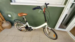 Bicicleta de paseo plegable con ruedas de 24 pulgadas. Ideal para desplazamientos urbanos y fácil de guardar. -Recién revisada y puesta a punto - Cuadro plegable. -Acoples Manillar -Timbre -Cambio Shimano Tz 6 velocidades -Reflectores catadioptricos - Ruedas de 24 pulgadas. - Portaequipajes trasero. -Guardabarros delantero y trasero