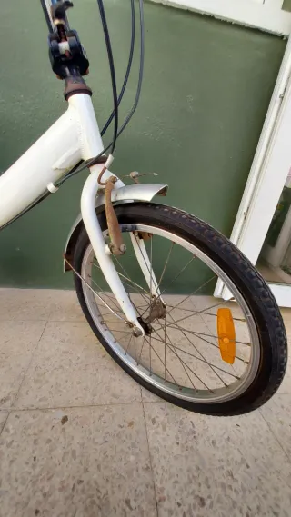 Bicicleta plegable de 24 pulgadas. Precio no negociable - Cuadro de color blanco. - Rueda trasera con reflector naranja. - Se vende por no darle uso y con una mínima revisión está para rodar