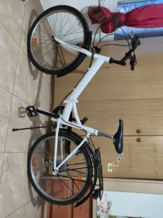 Bicicleta plegable Folding 24 en buen estado. - Color blanco. - Ruedas de 24 pulgadas. - Incluye portaequipajes trasero. - Frenos visibles. Unico fallo no cambia de marchas, no se que le pasa.