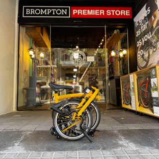 Bicicleta plegable Brompton C-Line Explore M6L (hasta 181 cm), 6 velocidades, guardabarros y colo Yellow. 7 años de garantía en cuadro y 3 en componentes (previo registro). Es una serie especial limitada. Somos Folding Bikes House, la mayor tienda especializada en Brompton de Europa, con más de 200 unidades en stock permanente para entrega inmediata. Disponemos de financiación gratuita: hasta 12 meses (3 % de gastos de apertura) o 24 meses (4 % de gastos de apertura). ¡Pregunta por nuestras promos! Si tienes cualquier duda sobre configuración o precios, contáctanos sin compromiso y te informaremos. Dahon, Tern, Decathlon, Plegable,