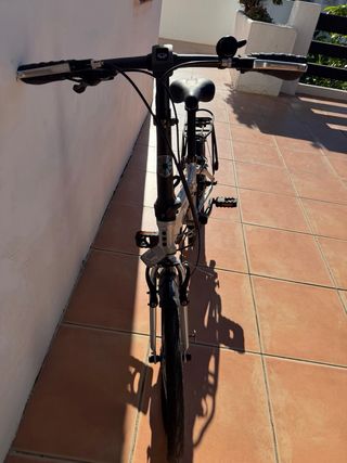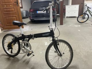Bicicleta plegable de prestigious marca Dahon modelo Briza D8 en color negro y con ruedas de 24 pulgadas. Excelente estado se puede ver en las fotos. Lo usé un par de veces. Características: Tamaño de rueda: 24", 8 velocidades sincronizadas, Plegable totalmente para poderla llevar en el maletero del coche (Tamaño plegada: 37 x 90x82). Peso 12kg. El asiento de la bicicleta es suave y y cómodo. viene con un timbre.
