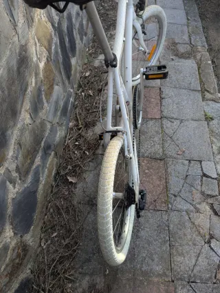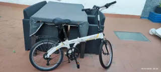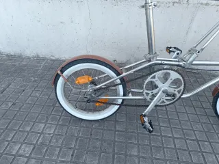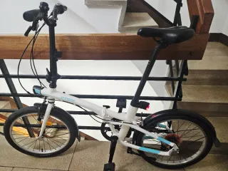 Bicicleta plegable de la marca Dahon en color blanco. Ideal para desplazamientos urbanos y fácil de guardar. Muy buena marca de bicicletas, usada por mi mujer durante años hasta que cambió de trabajo y se compró una moto. - Cuadro plegable. - Ruedas de 20 pulgadas. - Frenos. - Cambio de marchas. - Sillín de Gel nuevo. - Cubierta Del nueva. - Cámaras de aire cambiadas. - Mantenimiento regular de engrase de cadena y zonas de plegado. - Guardabarros Del y Tras por montar nuevos.