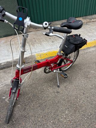 Vendo Dahon Vigor P9 plegable en buen estado general. Ligera, 9 velocidades, perfecta para ciudad y transporte público. Funciona correctamente. Necesita mantenimiento básico (limpieza y cable trasero recomendable cambiar), de ahí el precio. Precio cerrado para venta rápida. No reservo. El primero que venga se la lleva.