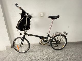 Vendo Dahon MU Ex la mejor bicicleta plegable. La más ligera con 8,8 Kg. Tiene desarrollo SRAM RED con 2 platos y 10 piñones, bielas de carbono, 20 pulgadas Hace 2 años le cambié platos, piñones, cadena, cubiertas, pastillas de frenos de triple compuesto y puños. También la mejoré cambiando la horquilla por una Controltech de carbono (240 eur), por lo que la bici está mejor que nueva. Si te interesa doy la horquilla original, está perfecta. Al poco tiempo me cambié de trabajo y casi no la he utilizado. Lleva luz delantera, trasera, cuentakm Cateye, timbre eléctrico y pedales extraíbles Wellgo. Se puede ver y probar Dahon Tern Brompt
