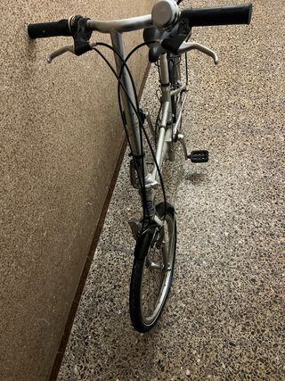Bicicleta plegable Dahon Vibe. - Cuadro de aluminio. - Ruedas de 20 pulgadas. - Frenos V-brake. - Cambio Shimano de 7 velocidades. - Sillín acolchado. - Guardabarros delantero y trasero. - Pata de cabra. Tiene la goma del manillar derecho para cambiar y