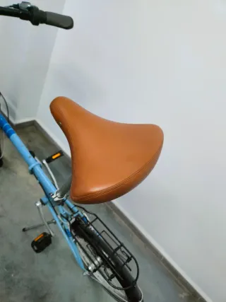 Bicicleta plegable DAHON en color azul claro con sillín marró tiene 7 marchas tiene porta quipaje tiene caballete tiene tinbre el sillín es de piel con muelles de suspensión es de alta calidad toda de alóminio pesa 9 kilos es muy ligera y muy rápida está zona plaza de España EL PRECIO NO ES NEGOCIABLE gracias