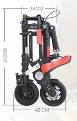 Bicicleta plegable A-bike, ideal para desplazamientos urbanos y fácil de transportar. - Diseño compacto y ligero. - Ruedas pequeñas para mayor maniobrabilidad. - Asiento ajustable. - Pedales plegables. Habría que cambiar frenos y algún detalle que tiene. Por ello el precio Es la original, tengo su mochila para trasportarla