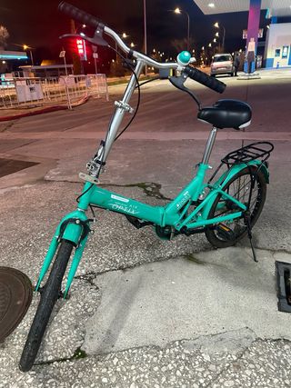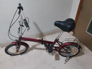 Bicicleta plegable en muy buen estado, ideal para ciudad y trayectos cortos. Compacta y fácil de guardar, perfecta para piso, oficina o transporte urbano. Cuenta con cambios Shimano de 7 velocidades, portaequipajes trasero y sillín cómodo. Funciona correctamente, solo necesita inflar las ruedas. Entrega en mano en Madrid, no hago envíos.