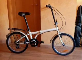 Bicicleta plegable B’Fold (Decathlon) 🚲 Ideal para ciudad, desplazamientos diarios o combinar con transporte público. Se pliega fácilmente, ocupa poco espacio y es muy cómoda de llevar y guardar. ✔️ 6 velocidades ✔️ Ligera y resistente ✔️ Plegado rápido ✔️ Perfecta para trayectos urbanos ✔️ Ajustable en altura ✔️ Ruedas de 20” Tiene signos normales de uso, pero funciona perfectamente.