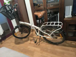 Bicicleta plegable de 20 pulgadas, ideal para desplazamientos urbanos o para llevarla contigo a donde vayas. Hace un año fue llevada a taller y se cambiaron y ajustaron frenos. Incluye también su cesta para poner delante - Diseño compacto y fácil de plegar. - Ruedas de 20 pulgadas. - Frenos eficientes. - Sillín ajustable.