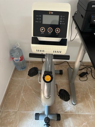 Bicicleta estática plegable, ideal para entrenar en casa. - Diseño compacto y fácil de guardar. - Estructura metálica resistente. - Asiento acolchado. - Manillar ergonómico. Tiene defecto en el sillín que se ve en la imagen. Mide km recorridos, calorías quemadas , frecuencia cardíaca, tiempo de ejercicio etc