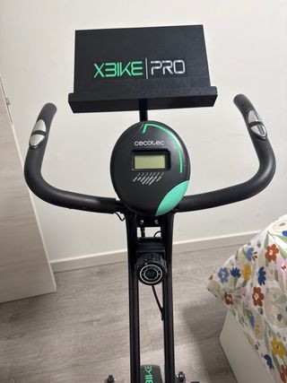 Bicicleta estática Cecotec X3ike Pro en color negro y verde. - Pantalla digital. - Soporte para tablet o móvil. - Asiento acolchado.