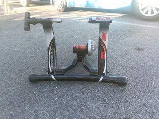 Rodillo de entrenamiento para bicicletas de la marca Elite, modelo Crono. Ideal para mantener la forma física en casa. - Diseño plegable para fácil almacenamiento. - Estructura robusta y estable. - Compatible con la mayoría de bicicletas.