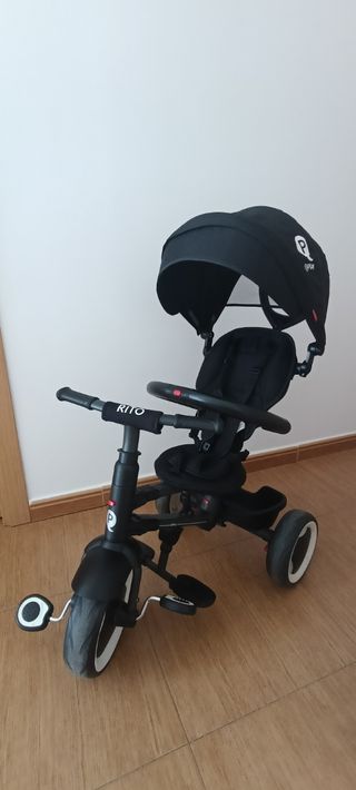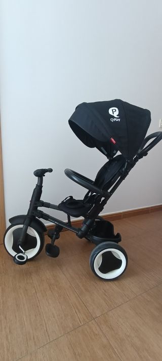 Triciclo evolutivo plegable 3 en 1. Desde los 10 hasta los 36 meses, máximo 25kg. - Marca QPLAY. Modelo Rito. - Capota desmontable. - Asiento reclinable y acolchado. - Cinturón de anclaje de 5 puntos. - Barra de empuje ajustable en altura. - Freno en ruedas traseras. Muy poco uso. Como nuevo. Precio original 120€. NO HAGO ENVÍOS. Recoger en Cáceres.